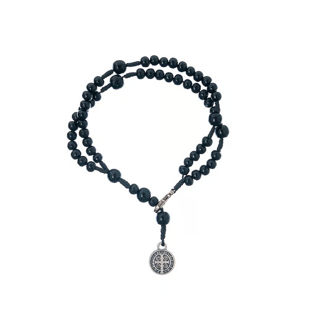 Pulseira Terço com Medalha de São Bento Preta, produzida com materiais de...